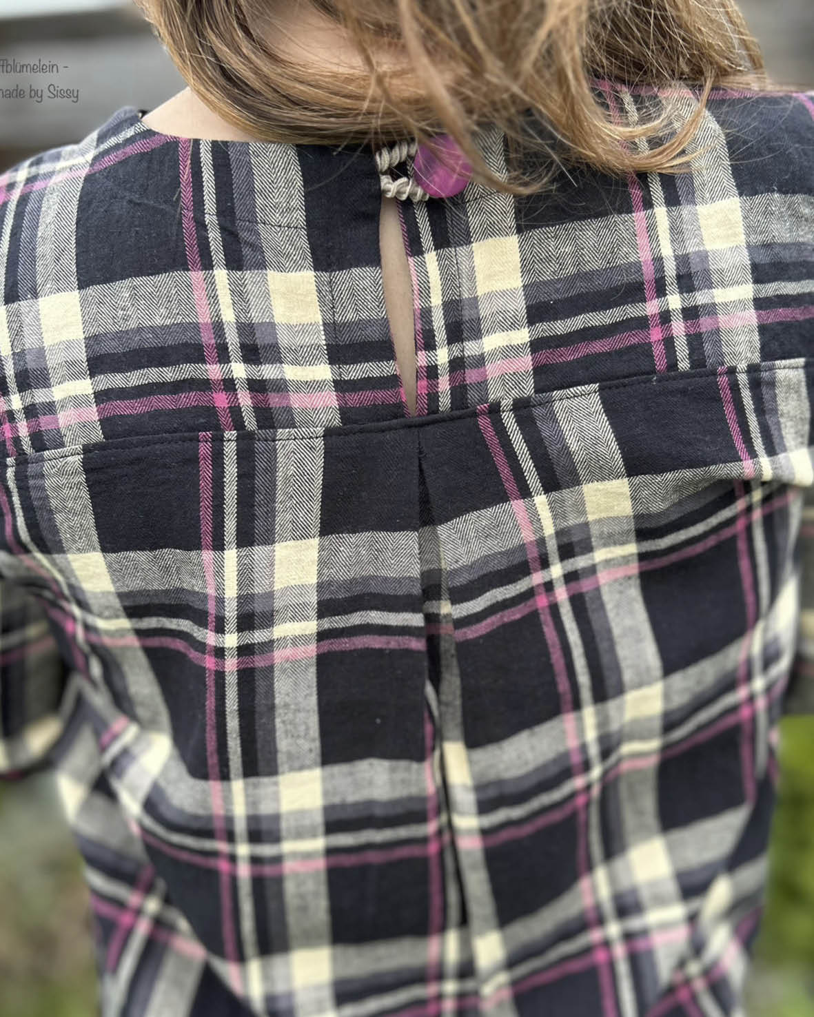 Im Rücken befindet sich eine Passe mit praktischem Verschluss, den du ganz nach Geschmack als Knopf, Bindeband oder kleine Knopfleiste umsetzen kannst.