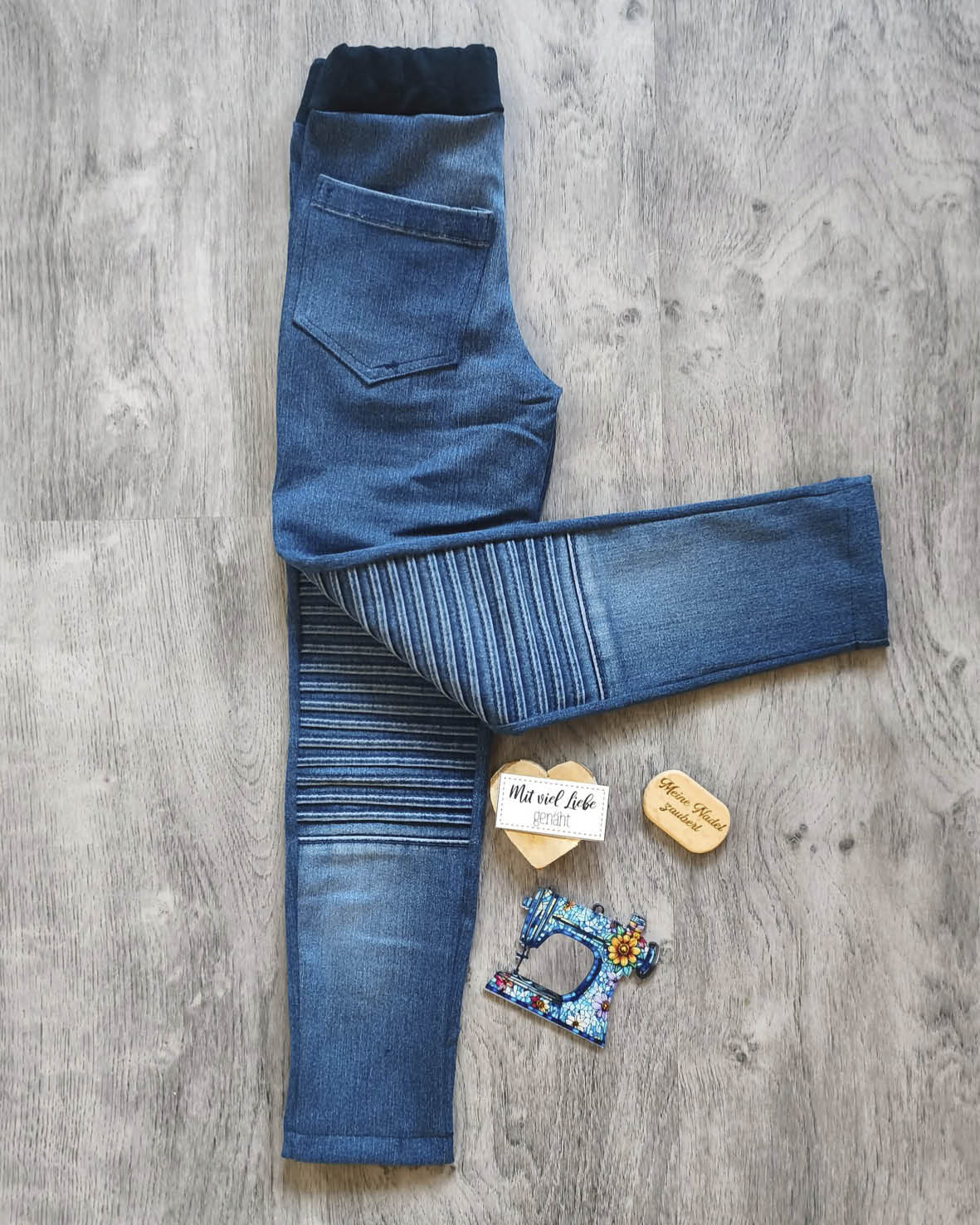 Genäht wird NELA aus dehnbarer Webware wie zum Beispiel Stretch Denim, Jeansjersey oder anderen elastischen Hosenstoffen. So bleibt sie formstabil, sieht aus wie eine echte Jeans und bietet gleichzeitig ein angenehmes Tragegefühl.