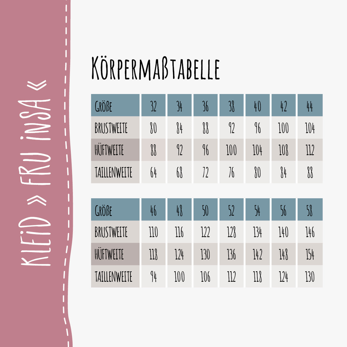 - Das Schnittmuster ist in Größe 32-58 erhältlich.
