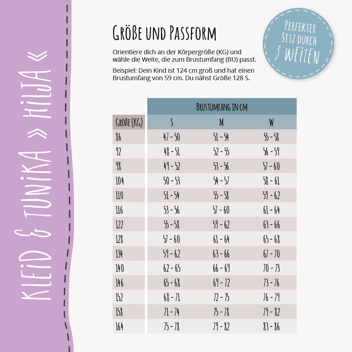 HILJA kann in den Einzelgrößen 86 bis 164 genäht werden und bringt verschiedene Varianten mit.