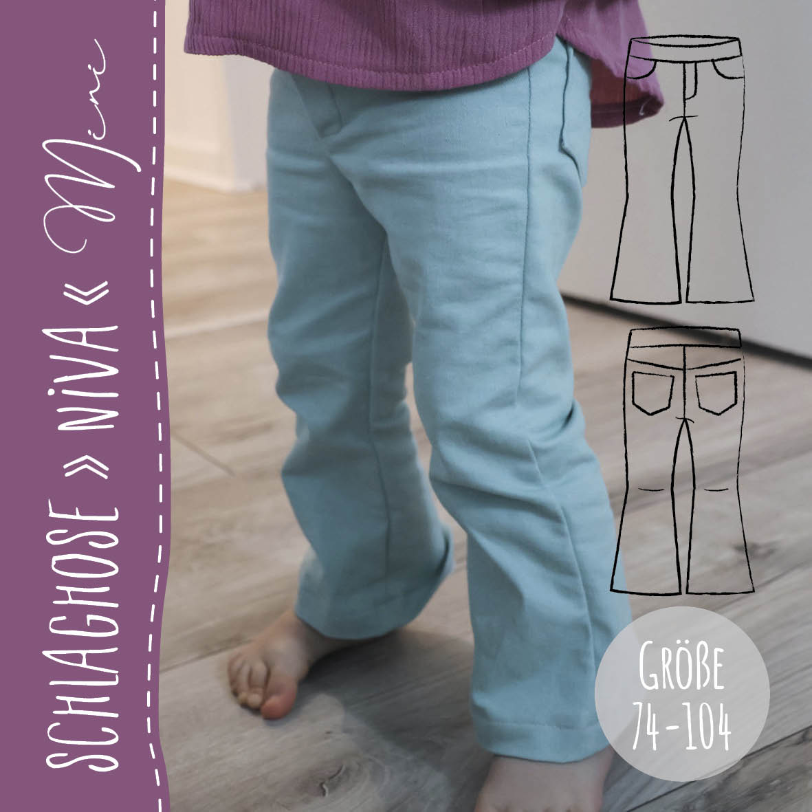 Die Hose NIVA MINI bringt den trendigen Schlag der großen NIVA auch in die Kleinkindgrößen 74–104 – natürlich mit ausreichend Platz für die Windel, damit Komfort und Bewegungsfreiheit jederzeit gewährleistet sind.